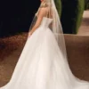 Shown in Ivory, Daphne can be paired with a matching one-tier full-length veil for a cohesive and statement bridal finish.