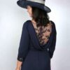 The dress features a beautiful cowl back that adds soft movement and subtle drama to the design. Sheer embroidered lace panels highlight the back, waistline, and cuffs, creating a cohesive and elegant finish without feeling heavy. The lace detailing adds texture while maintaining comfort and ease of wear.
