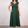 A soft twist of jersey at the front creates gentle shaping and adds visual interest to the bodice. This detail draws the eye to the waist, helping to define the figure without feeling restrictive. The skirt flows into a wide A-line shape, offering movement and a light, floaty finish.