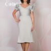 A perfect Mother of the Bride or Mother of the Groom dress for those seeking a fit-and-flare silhouette with statement sleeves, elegant shaping, and a confident, contemporary finish.