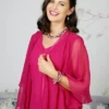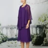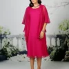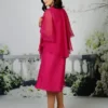 EBEJ025 Mother of the Bride and Groom Jacket. A beautiful jacket with waterfall front and soft, floating sleeves. Available in any chiffon colour, shown in Purple and Fuchsia. Satin binding will always match chosen chiffon colour.