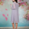 EBEJ075 Mother of the Bride and Groom Jacket. Sheer chiffon coat with long sleeves and a satin edge. Wear with our fitted jersey dress EBED075. Available in any chiffon colour, shown in Wisteria and Rose. Store Sale Sample is Available in Periwinkle to Suit Size 12-14* (*Sale Price applies only to specified item) Satin will always match chosen chiffon colour.