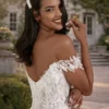 At the back, covered buttons and intricate lace detail add sophistication, while the off-the-shoulder neckline flatters the décolletage beautifully. Perfect for both traditional ceremonies and grand celebrations, Glinda ensures a breathtaking bridal entrance.
