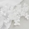 Pescara Single Tier Joyce Jackson Veil. A romantic single tier veil handcrafted from a single swathe of dreamy Italian tulle featuring delicate scattered lace motifs on the train and finished with a simple stitched edge. The pretty lace motifs are adorned with dainty beads and shimmering ivory pearls for added detail. A beautiful wedding veil for the modern bride.