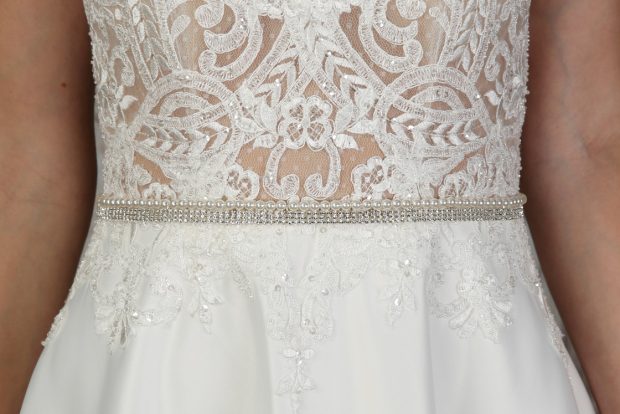RD-Belt 202 Pearl and Diamante Belt is a beautiful addition to enhance your wedding dress. Timeless luxe pearl and Diamante belt with a touch of shimmering crystal, perfect to add extra elegance to your wedding dress. Ties at the back with double sided satin ribbon.