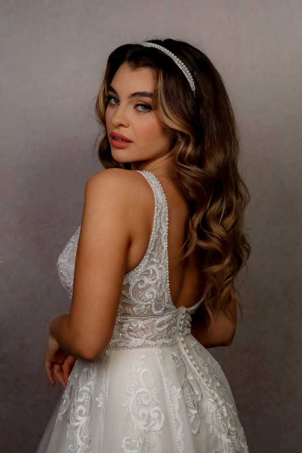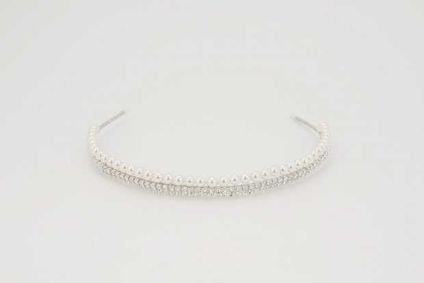 Richard Designs TR2620A Elegant Pearl Crown. A simple, elegant headband adorned with crystals and pretty pearls. A refined and contemporary style to add sparkle to your bridal look. Wear flat as a band or upright as a tiara. Available in silver with cream, cream rose or white pearls, or rose gold with a choice of cream or cream rose pearls.